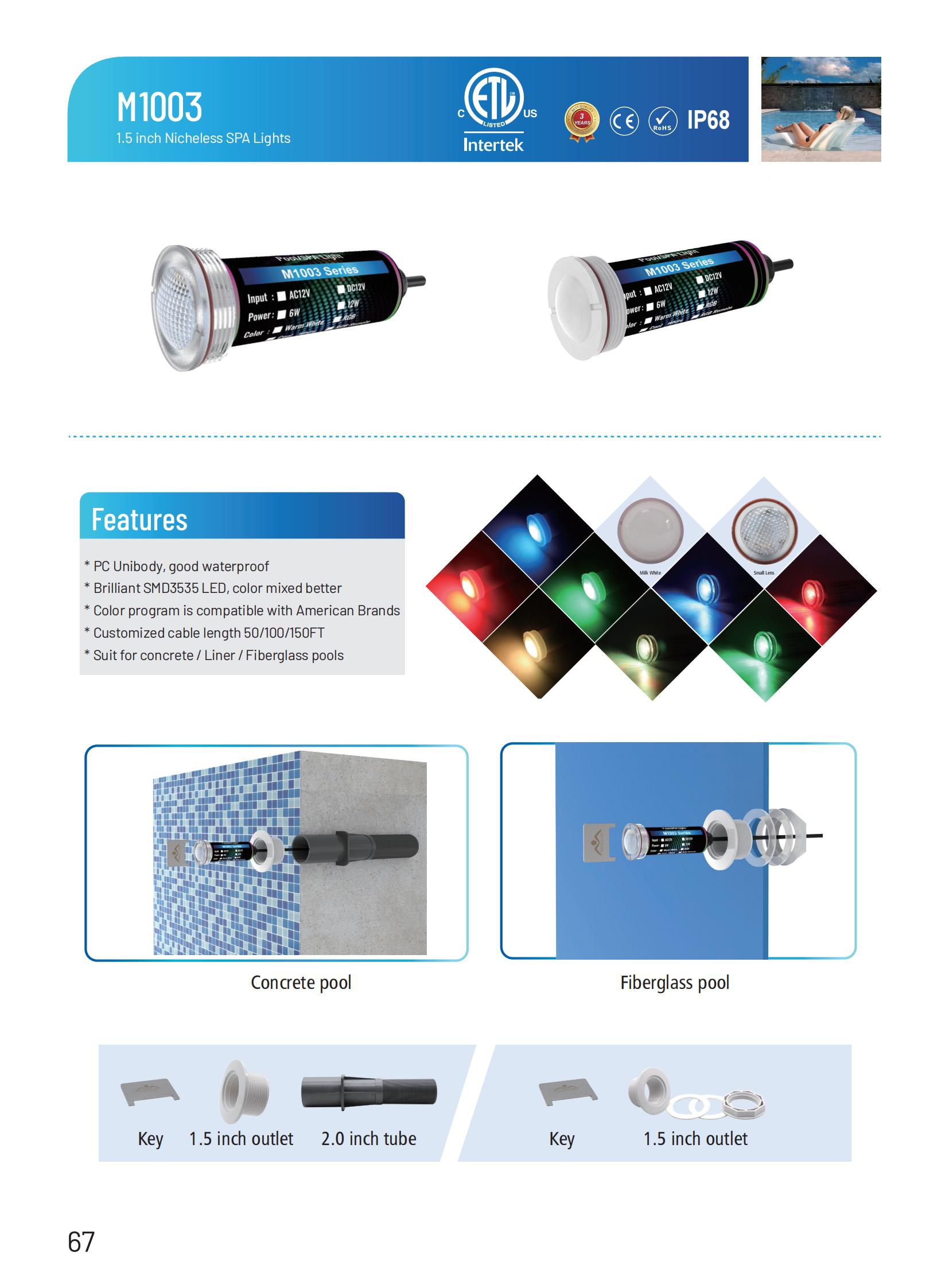 This 1003 model led pool light are made with different colors different lens and different power. You can also choose different length of cables.